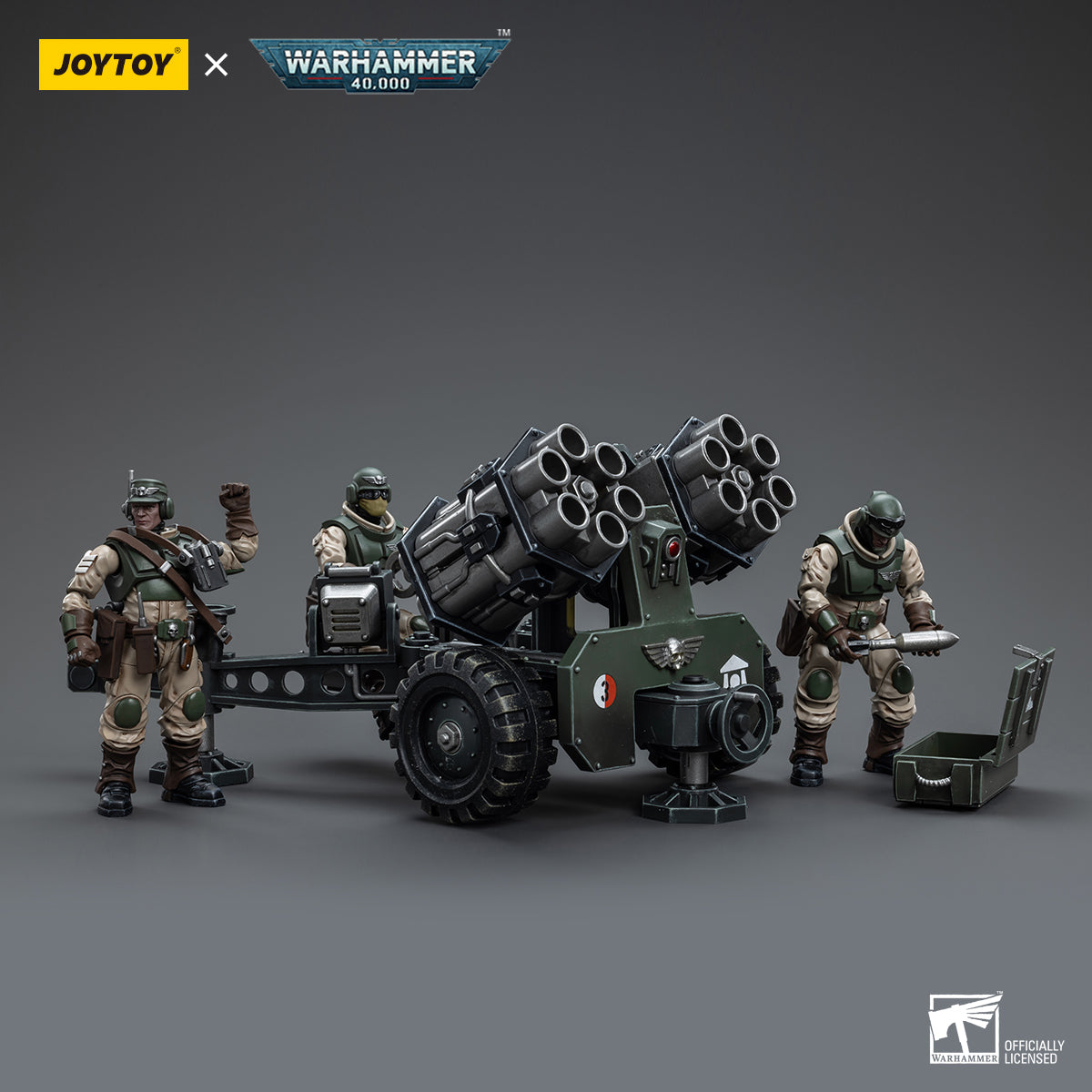JoyToy 1/18 Warhammer 40K Astra Militarum Ordnance Team mit Malleus Rocket Launcher Ordnance Brigade