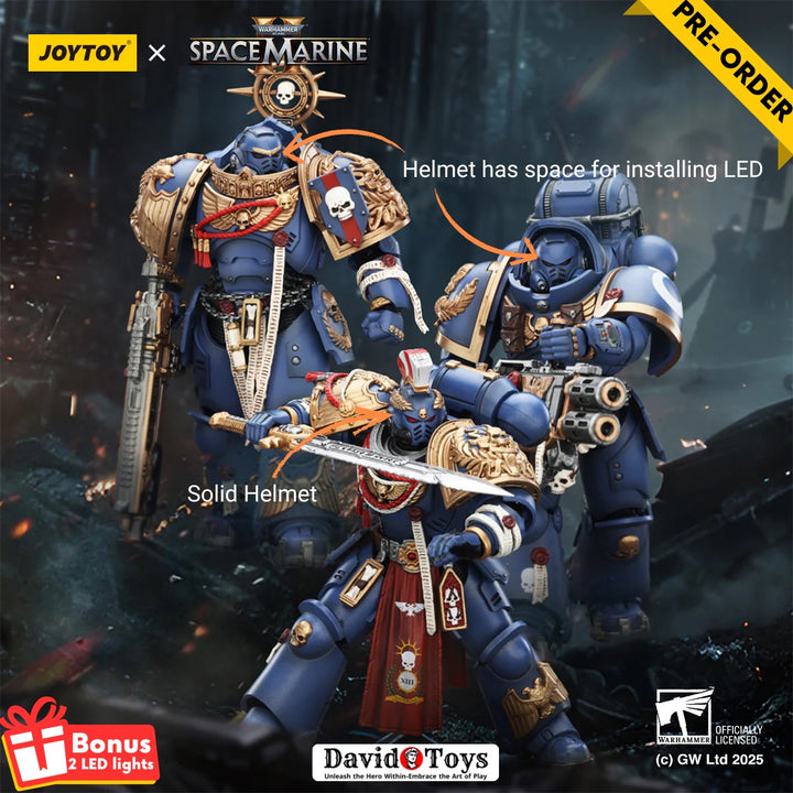Heavy Relic Primus Armor and Heavy Artificer Armor can be placeed LED lights inside. Ultramarines Relic Primus Armour of helmet is solid and does not have any position for placing LED light.